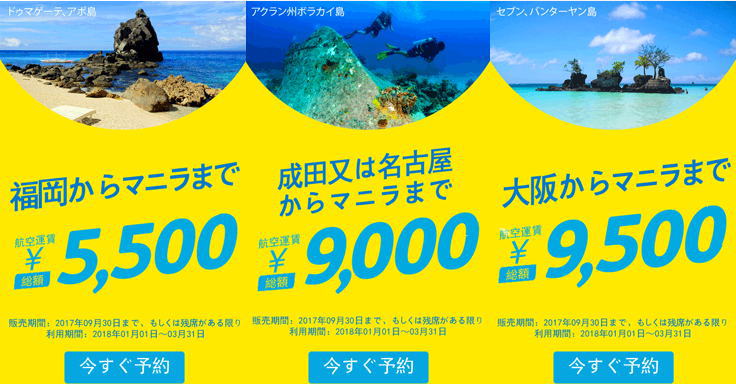 大阪からマニラまで 10,000円から