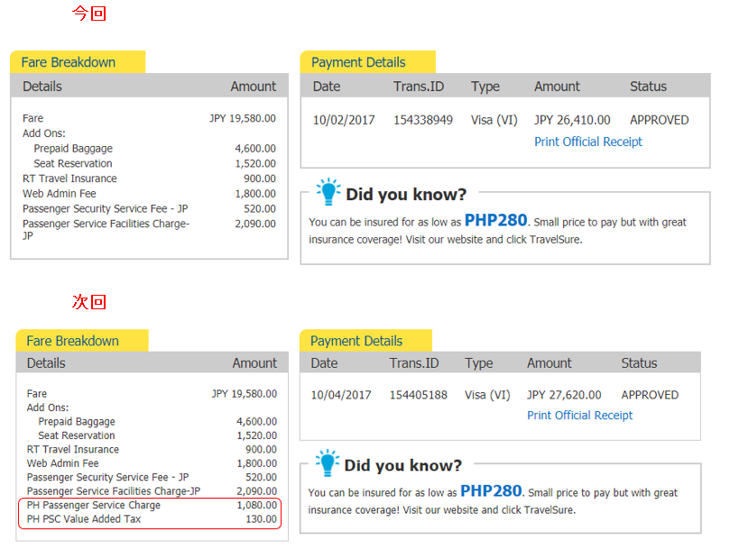 納得いかないまま帰国し、次回のプロモのチケットと比べて納得