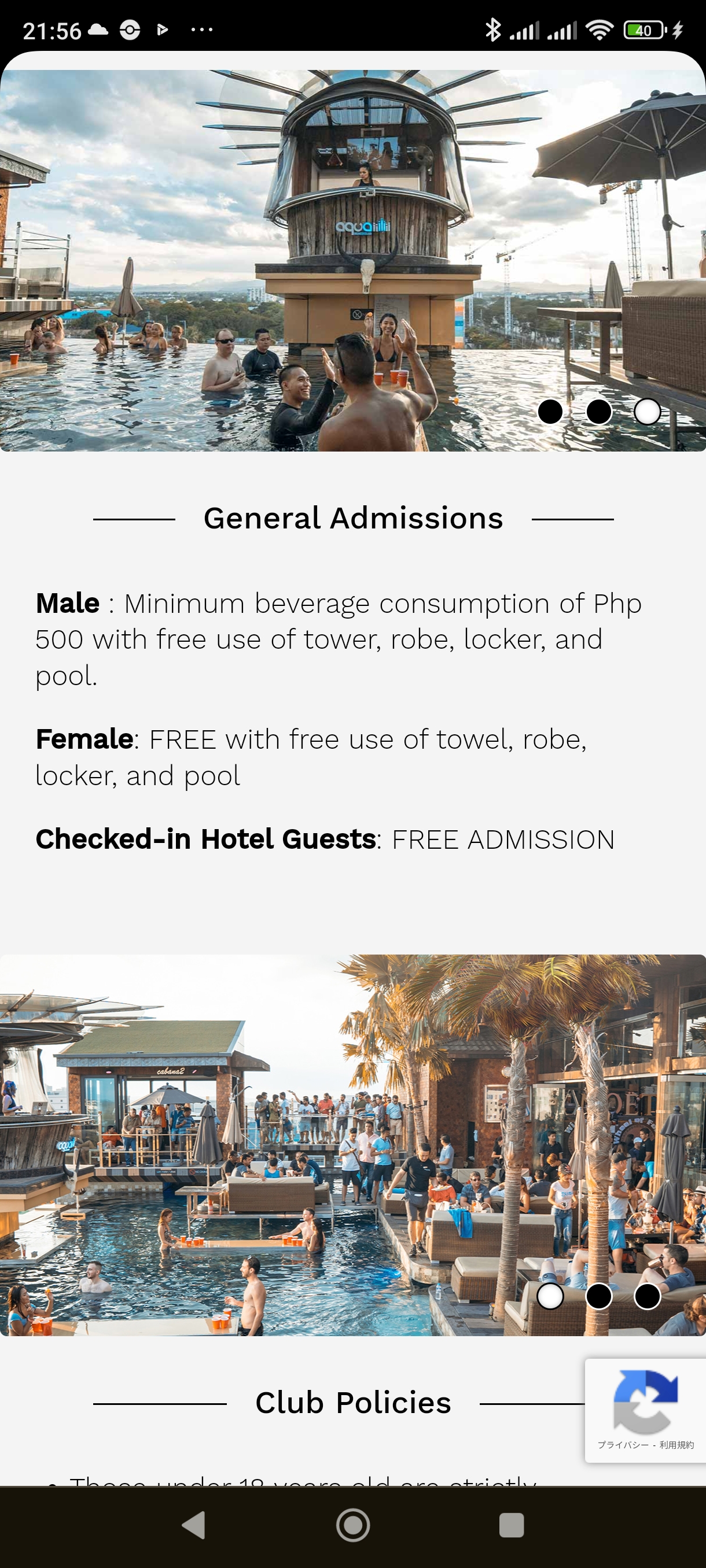 まぁ、行った先でタオルも借りずロッカーも使わず、ドリンクも頼まないなんて無いハズですから、今となっては、値上げもされず男性のみ500ペソ維持なのでお値打ちですね。