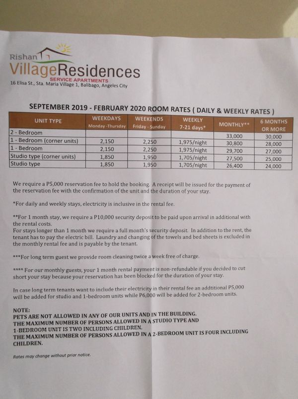 1月20日から24日まで利用しました。1Fのスタジオタイプでよかったです。ただしWifiが暑中切れるので大変でした。スマホのsimを入れて設定してもつながらず、smaet,globe療法です。設定の仕方が悪くてだめなのかわからず、現地の知り合いに見てもらったら大丈夫だというので、ホテルの外ではつながりました。