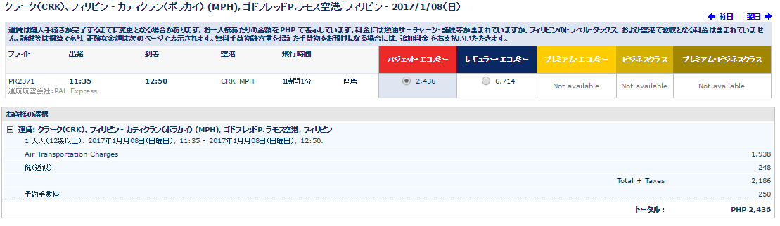 フィリピンエアー公式サイトでもクラーク空港が選択できるようになりました。