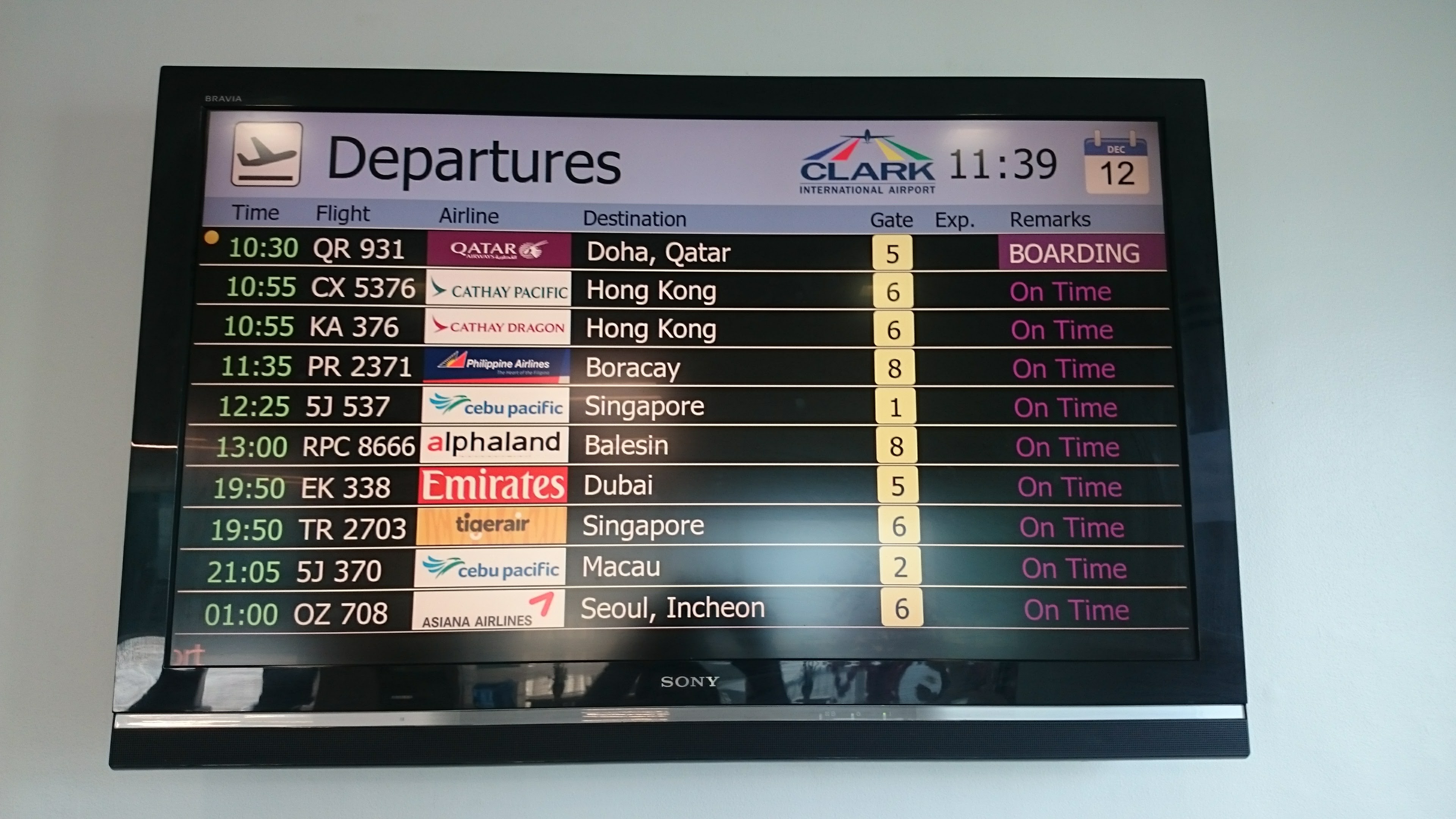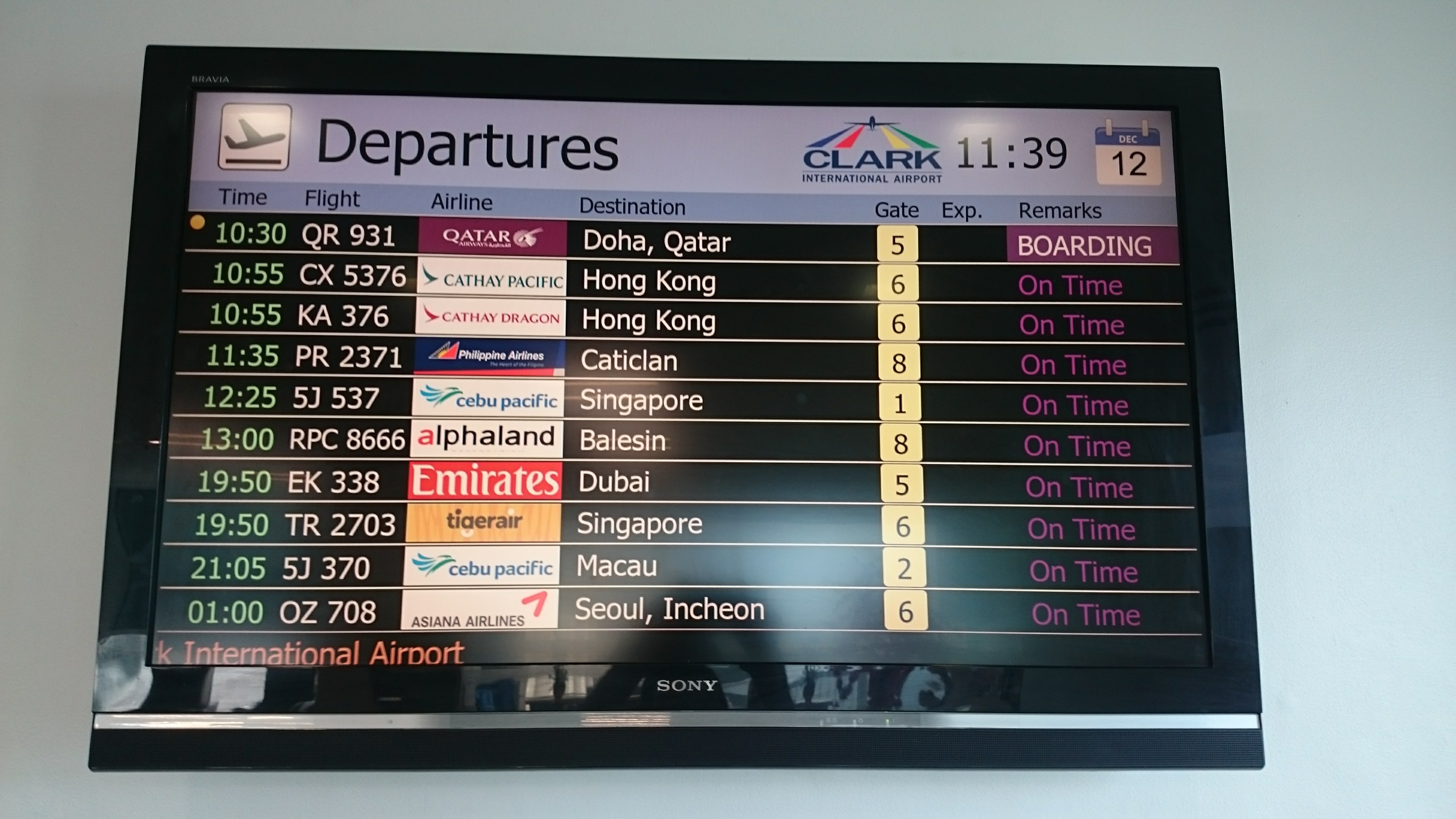 就航は12/16からということですが、昨日12/12にクラーク空港の出発便リストのところに早くも表示されてました(笑)