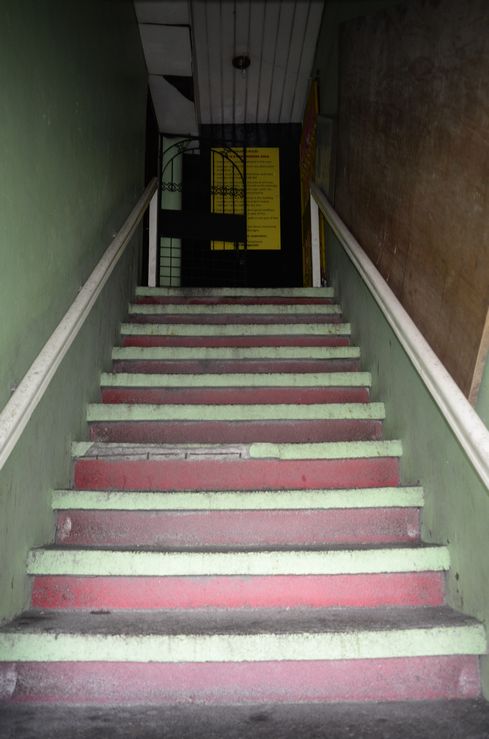 夜間の出入り口 階段を上がった左側がホテル入口 右側がホストクラブ