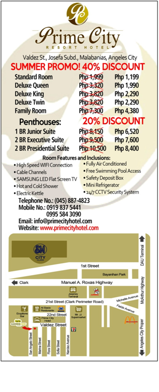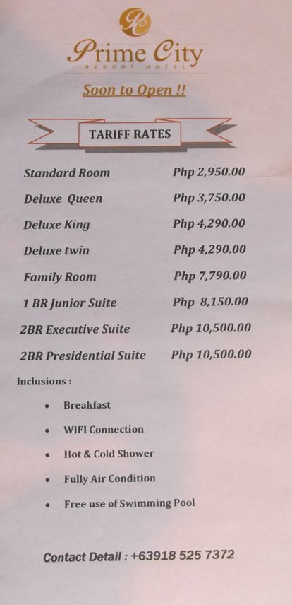 ABCホテルの裏側にあります3つ星ホテルです、今回利用したのがツインルーム部屋も広く綺麗に清掃もされてあり良かったです。お湯も出ますがシャーワが少し圧が弱かったです、ここのホテルはウオーキングストリートまで無料送迎してくれます、ちなみにSMまでは100ペソでした。最近ストリートチルドレンがミンダナオあたりから沢山来てる為なるべく歩きは避けた方がいいと思います。