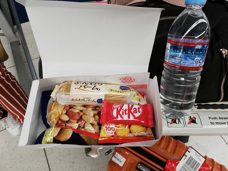 ★ロビーで職員が一人一人名前をチェックして、暫くしてからスナックボックスと水が配られる