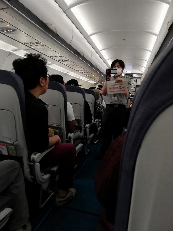 ★暫くして医療関係者と思われる人に続き、体温検査人やポリスが乗り込んでくる。体温検査は通常の流れらしい